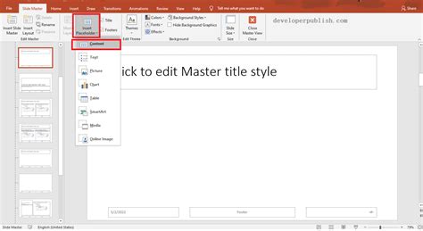 Web in the slide master tab, click on the insert placeholder icon.